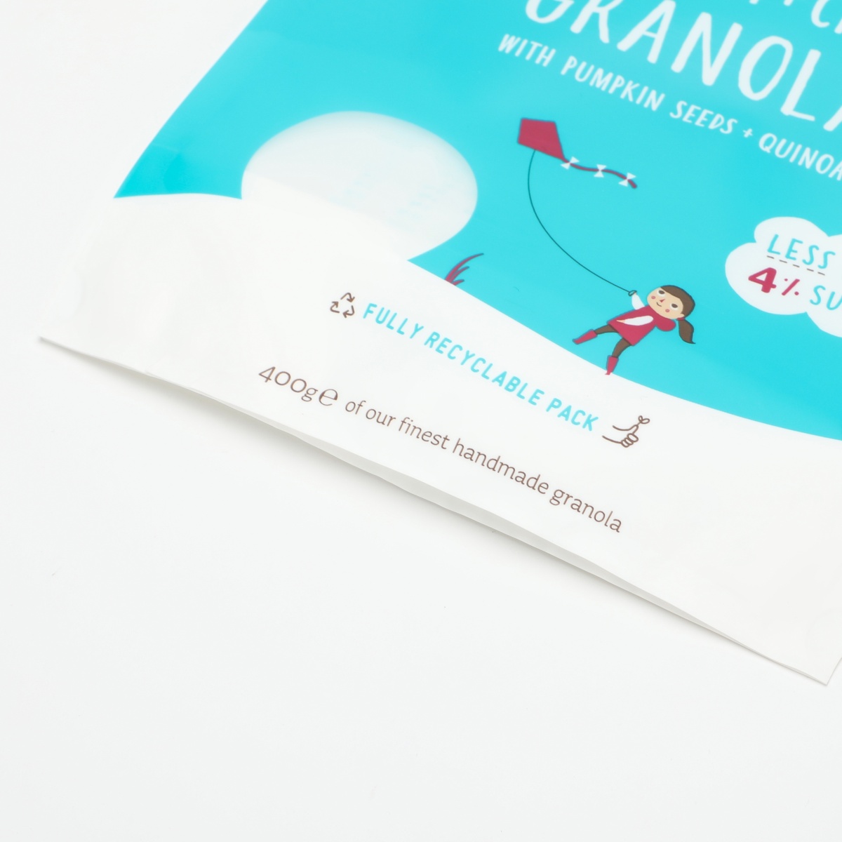 Bolsa vertical reciclada de PCR ecológica para avena y granola