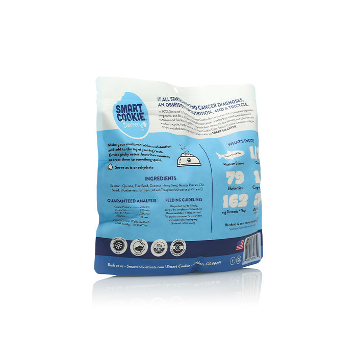 Nuestras bolsas stand-up para comida para perros con impresión personalizada están fabricadas con una barrera resistente de 130 micras que protege la frescura, el aroma y el valor nutricional. Fabricadas con materiales totalmente reciclables, estas bolsas ecológicas para comida para perros promueven una imagen de marca sostenible y cumplen con los estándares globales de reciclaje. Con un fuelle inferior estable, una cremallera resellable y una impresión en huecograbado de alta definición, ofrecen excelente estabilidad en el almacenamiento, comodidad y un gran impacto visual para las golosinas y snacks de tu mascota.